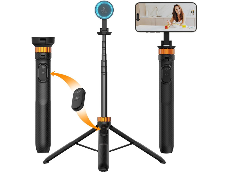 MS19 объединяет в себе и селфи-палку и настольный штатив с креплением MagSafe, что. делает его отличным решением для мобильной съёмки. Максимальная высота в 162 см и 7-секционная регулировка ножек позволяют адаптировать штатив под любые сценарии съемки, от портретов до пейзажей