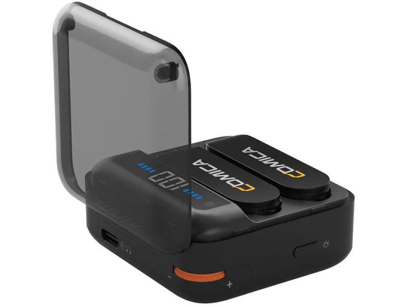 Новое поколение радиосистем отличается все более необычным и компактным дизайном, и CoMica способна удивлять. Vimo S это комплект из двух передатчиков в стильном зарядной кейсе, к которому подключается приёмник с внешней стороны. Конструкция избавлена от всего лишнего и чрезвычайно удобна в работе