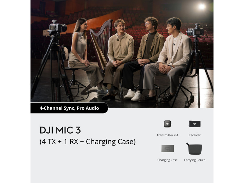 Лёгкий и компактный микрофон DJI Mic 3 можно носить как на магните, так и с помощью зажима, что обеспечивает гибкость в использовании. В зарядном кейсе передатчики, приёмник и аксессуары хранятся вместе, что упрощает переноску и мгновенную настройку .
