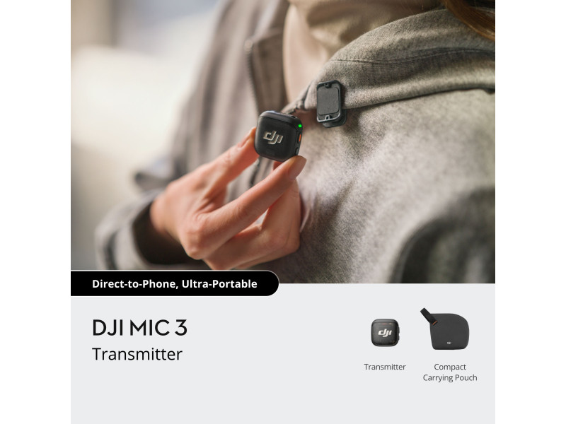 Лёгкий и компактный микрофон DJI Mic 3 можно носить как на магнитном креплении, так и с помощью зажима, что обеспечивает гибкость в использовании. В зарядном кейсе передатчики, приёмник и аксессуары хранятся вместе, что упрощает переноску и мгновенную настройку