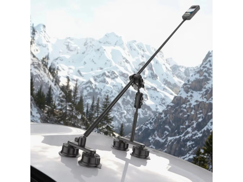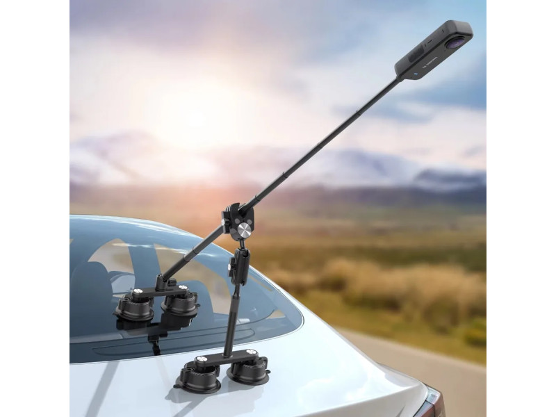 Представляем мощный и надёжный комплект автомобильного крепления с 4 присосками и выдвижным моноподом для экшн-камер Insta360. Идеальное решение для съёмки видеороликов и фото снаружи автомобиля — создавайте динамичные кадры с различных ракурсов: спереди, сбоку, сзади или даже сверху.