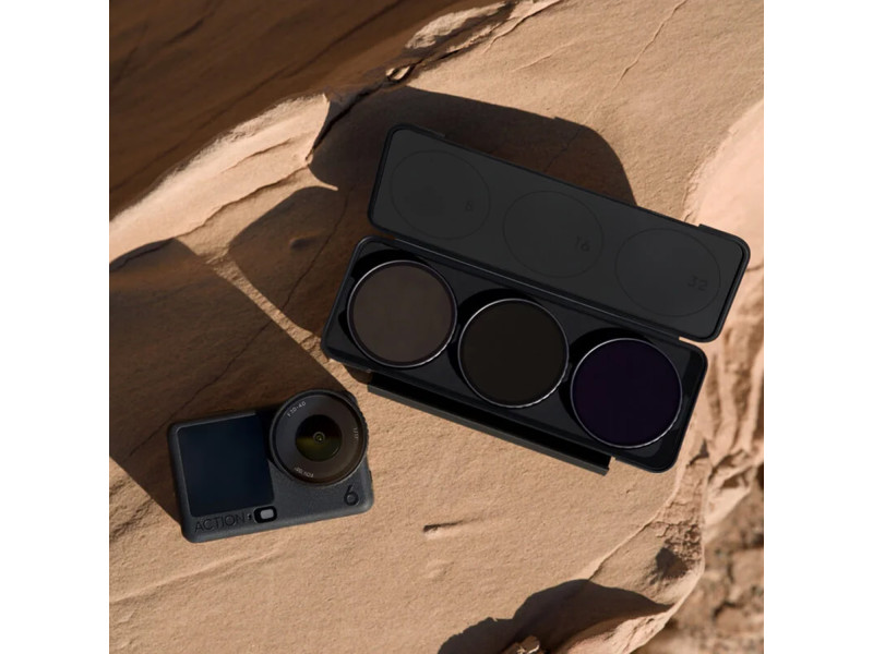 В комплект входят фильтры ND8, ND16 и ND32, а также футляр для ND-фильтров, идеально подходящие для спортивной фотографии в условиях яркого освещения, например, на заснеженных склонах. ND-фильтры изготовлены из высокопрочного стекла, устойчивого к падениям, царапинам и загрязнениям.