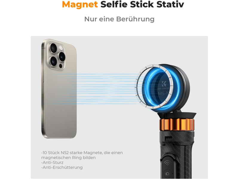 MS19 объединяет в себе и селфи-палку и настольный штатив с креплением MagSafe, что. делает его отличным решением для мобильной съёмки. Максимальная высота в 162 см и 7-секционная регулировка ножек позволяют адаптировать штатив под любые сценарии съемки, от портретов до пейзажей
